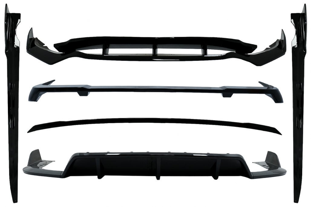 The front lip rear diffuser side skirts extensions roof spoiler and trunk spoiler crafted in high-quality polypropylene