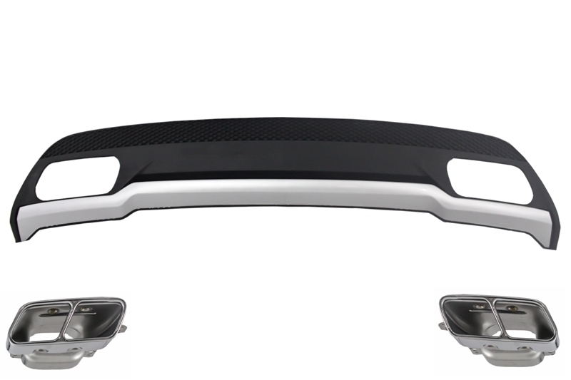 Mercedes A-Class W176 Facelift (09.2015-Up)DescriptionRear Bumper Air Diffuser crafted in high quality ABS plastic equipped with double exhaust outlets