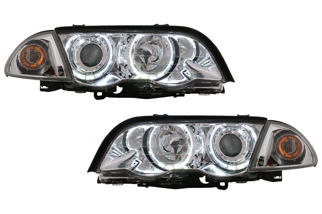 Angel Eyes Headlights suitable for BMW 3 Series E46 Limousine Touring (05.1998-08.2001) Chrome