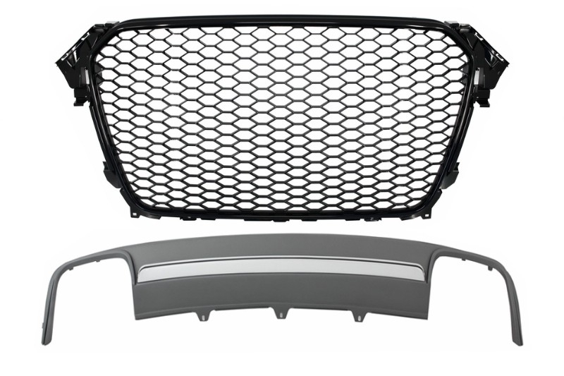 Assembly Central Grille with Rear Bumper Valance Air Diffuser suitable for Audi A4 B8 Facelift (2012-2015) Limousine Avant RS Design