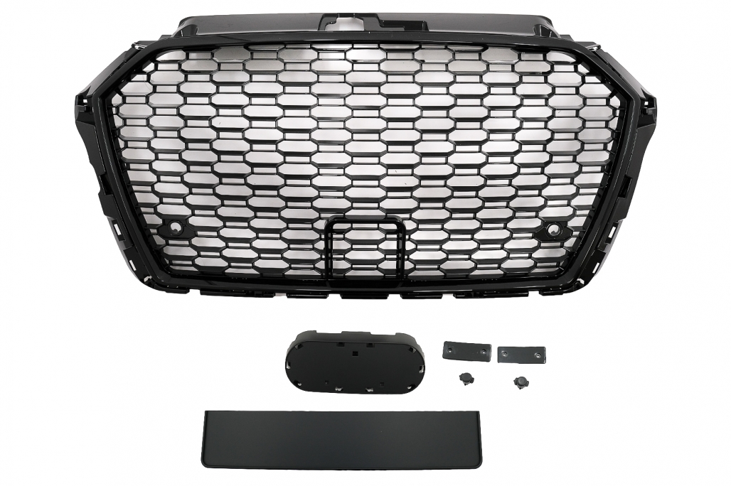 Badgeless Front Grille suitable for Audi A3 8V Facelift (2017-2018) Piano Black RS3 Design
