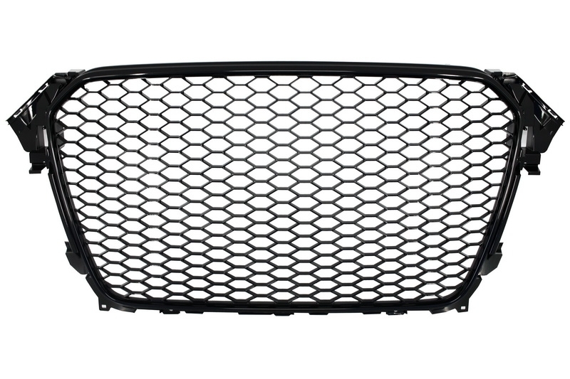 Badgeless Front Grille suitable for Audi A4 B8 Facelift (2012-2015) RS Design Piano Black With and Without PDC