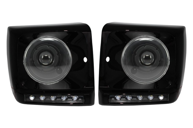Black Headlights Covers LED DRL suitable for Mercedes G-Class W463 (1989-2012) G65 Design with Headlights Bi-Xenon