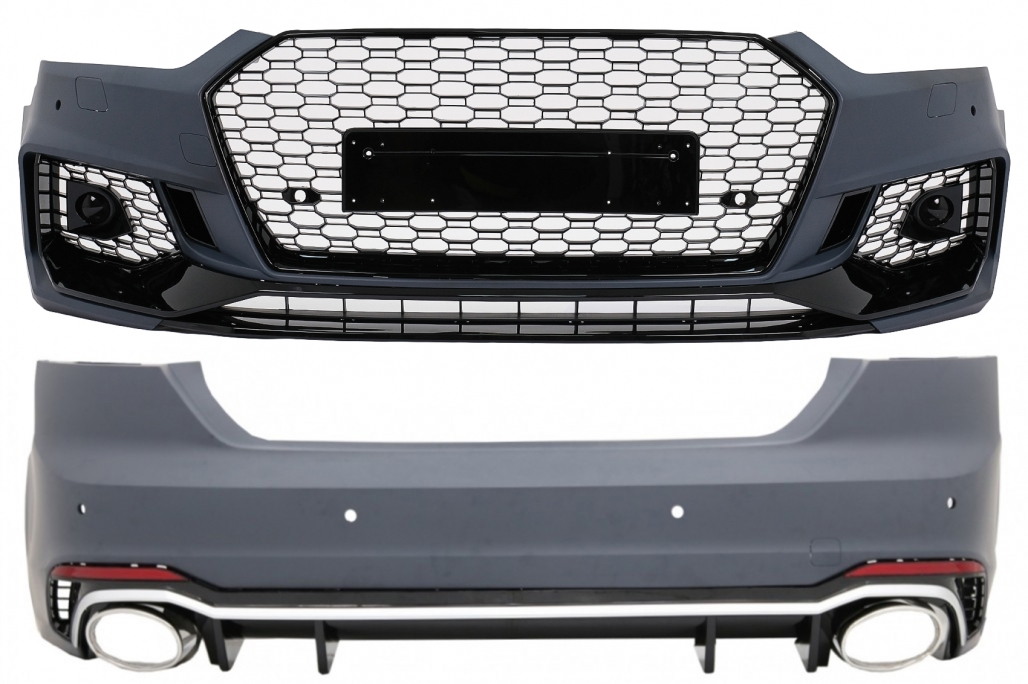 Equipped with honey comb Quattro RS5 design central grille side grilles and lower bumper extension and PDC Holders