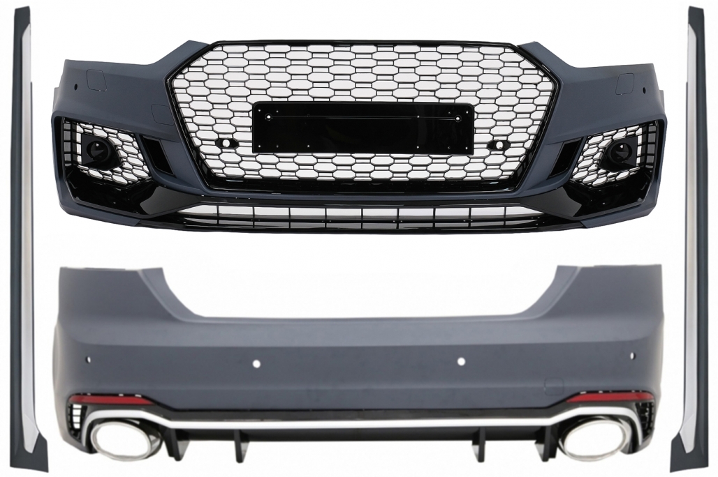 Equipped with honey comb Quattro RS5 design central grille side grilles and lower bumper extension and PDC Holders