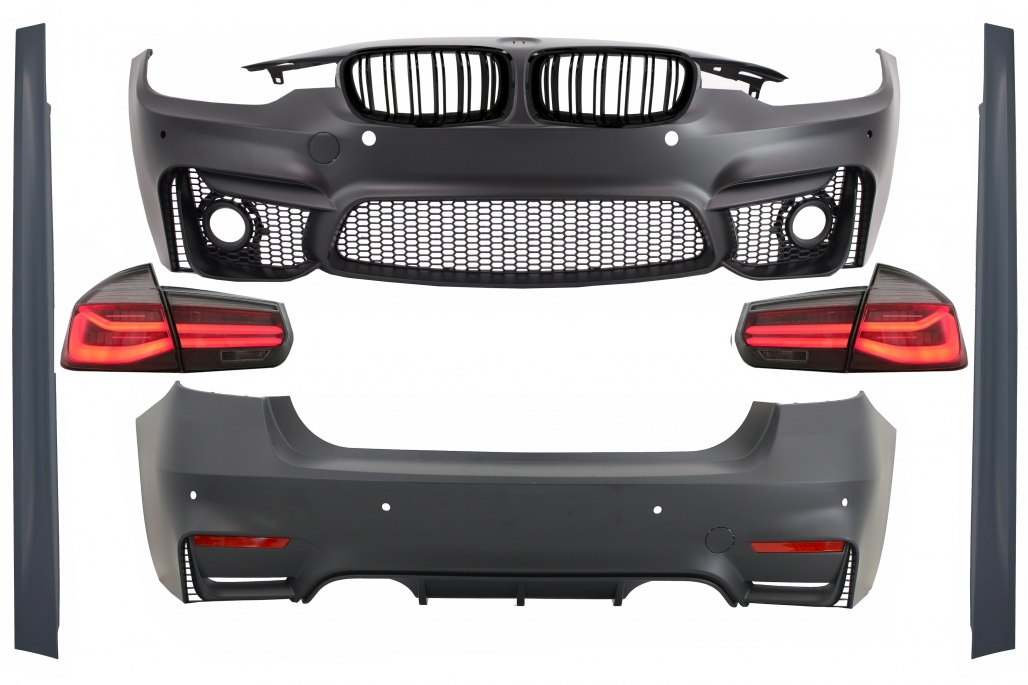 Body Kit suitable for BMW 3 Series F30 (2011-2019) with LED Taillights Dynamic Sequential Turning Light EVO II M3 CS Design and Kidney Grilles Double Stripe M Design Piano Black