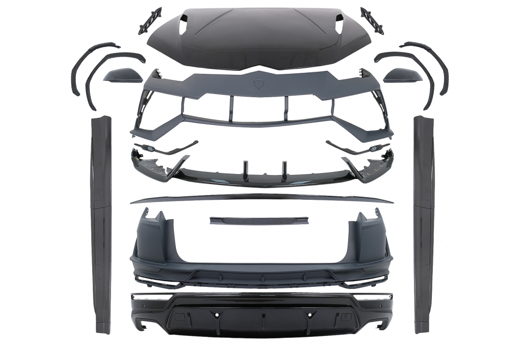 IntroUrus is a symbol of power strength and speed. With this body kit you will update the look and receive a sporty and aggressive touch along with 2023 Design. These dry carbon accessories will create a sense of prestige and exclusivitySuitable forLamborghini Urus (2018-2022)DescriptionComplete Body Kit Conversion to 2023 Design