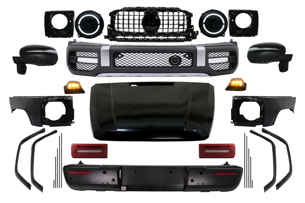IntroThis 2018 look full conversion body kit is meant to upgrade the look on your G-class W463 1990-2017 and transform it into the newest model.Suitable forMercedes G-Class W463 (2008-2017) *with factory Xenon