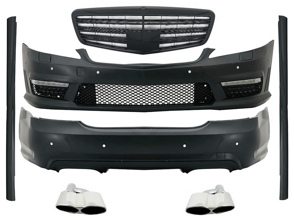 Body Kit suitable for Mercedes S-Class W221 (2005-2011) with Front Grille Piano Black and Exhaust Muffler Tips