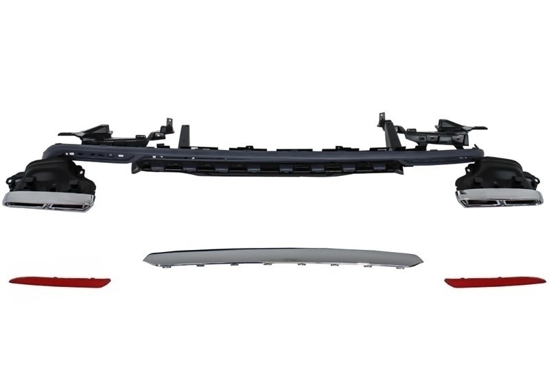 Rear bumper diffuser equipped with double outlet exhaust brushed aluminum rear molding spoiler.