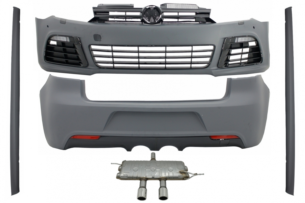 Body Kit suitable for VW Golf VI 6 MK6 (2008-2013) R20 Design with Side Skirts and Complet Exhaust System Catback Muffler