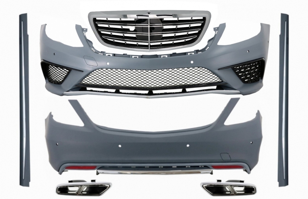 Body Kit with Exhaust Muffler Tips Chrome and Front Grille suitable for Mercedes S-Class W222 (2013-06.2017) S63 Design