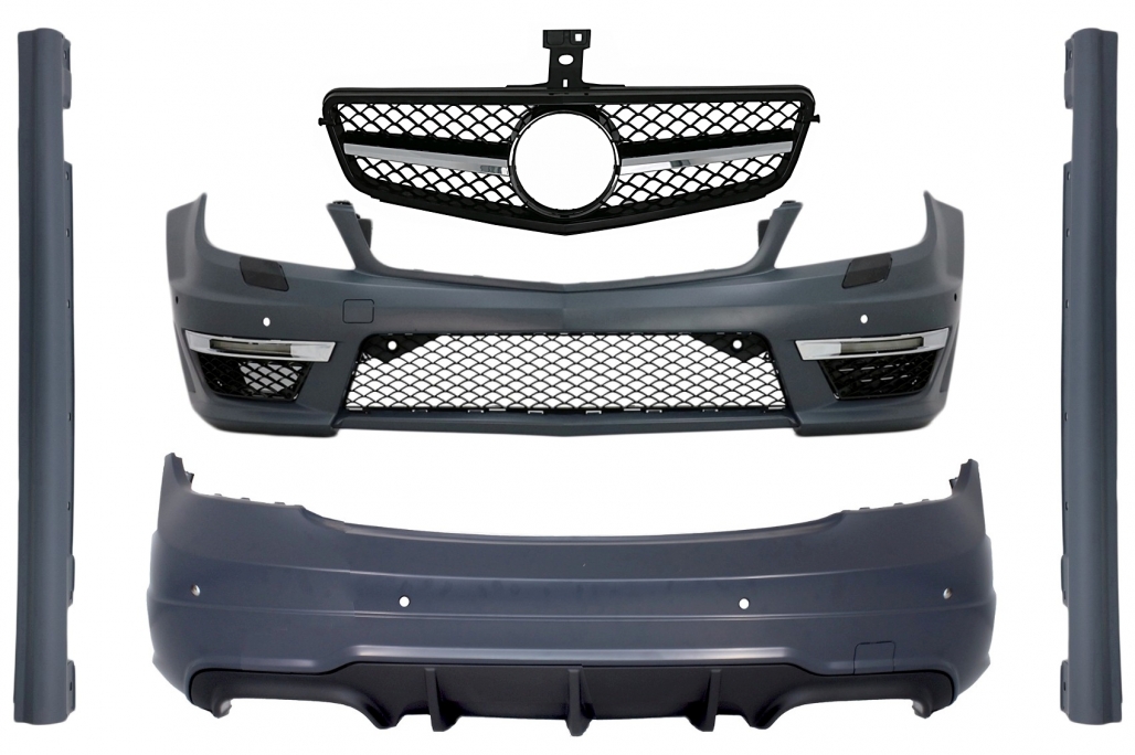 Body Kit with Sport Front Grille Black suitable for Mercedes C-Class W204 (2007-2014) Facelift C63 Design