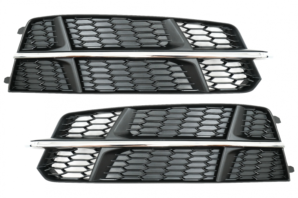 Bumper Lower Grille Covers Side Grilles suitable for Audi A6 C7 4G S-Line Facelift (2015-2018) Black Chrome