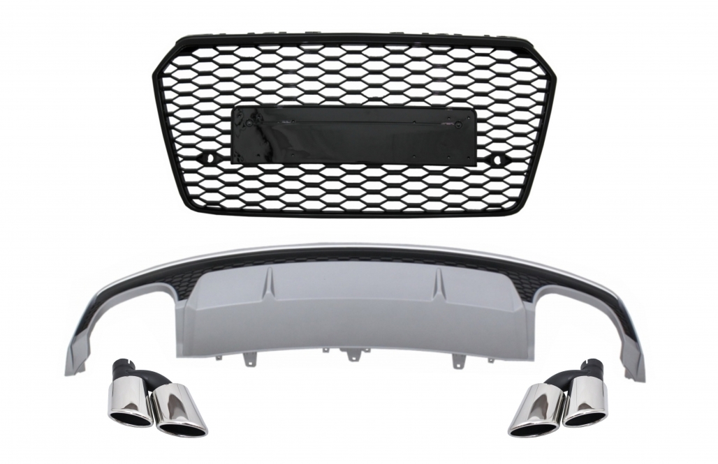 Bumper Valance Air Diffuser with Exhaust Muffler Tips and Front Grille suitable for Audi A7 4G Facelift (2015-2017) S7 Design