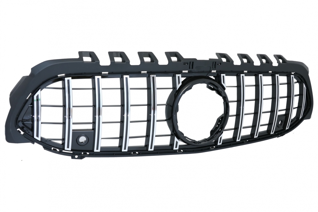 Central Grille suitable for Mercedes A-Class W177 Hatchback V177 Sedan (04.2018-2022) GT-R Panamericana Design Black Chrome
