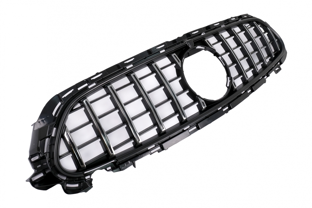 IntroThis GT-R Design grille is meant to give your Mercedes E-Class (2020-up) the new fresh fierce and sportive Panamericana Look.Suitable forMercedes E-Class W213 Limousine (2020-Up) AMG Sport Line
