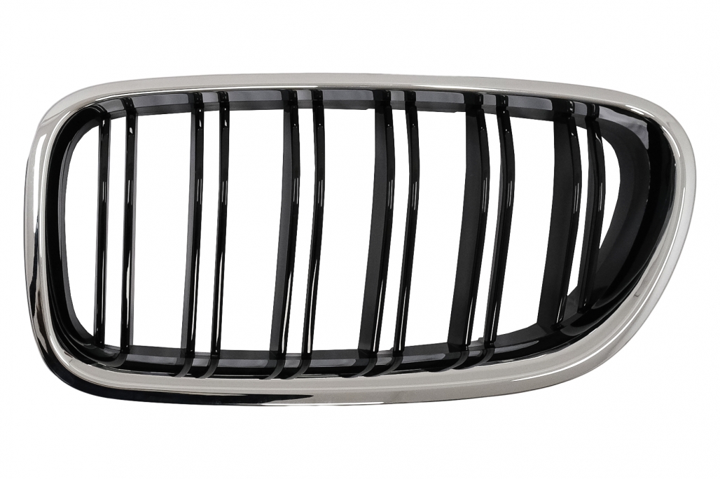 Central Kidney Grilles suitable for BMW 5 Series F10 F11 (2010-2017) Chrome Frame Piano Black Double Stripe