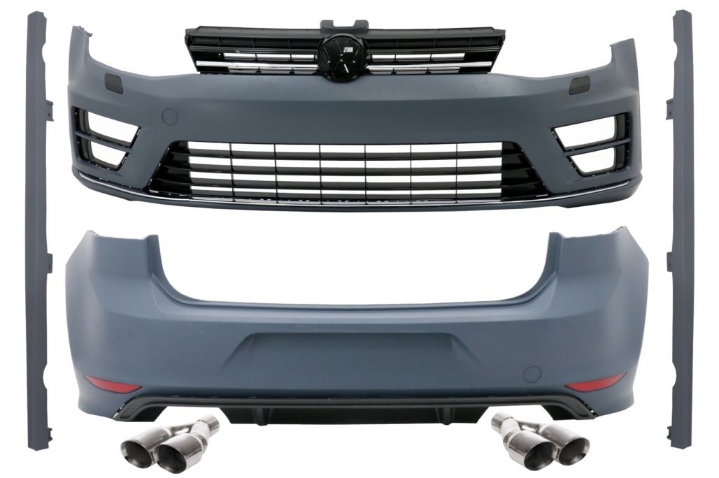 Complete Body Kit + Exhaust Muffler Tips Quad suitable for VW Golf 7 VII 12+ R R20 Look