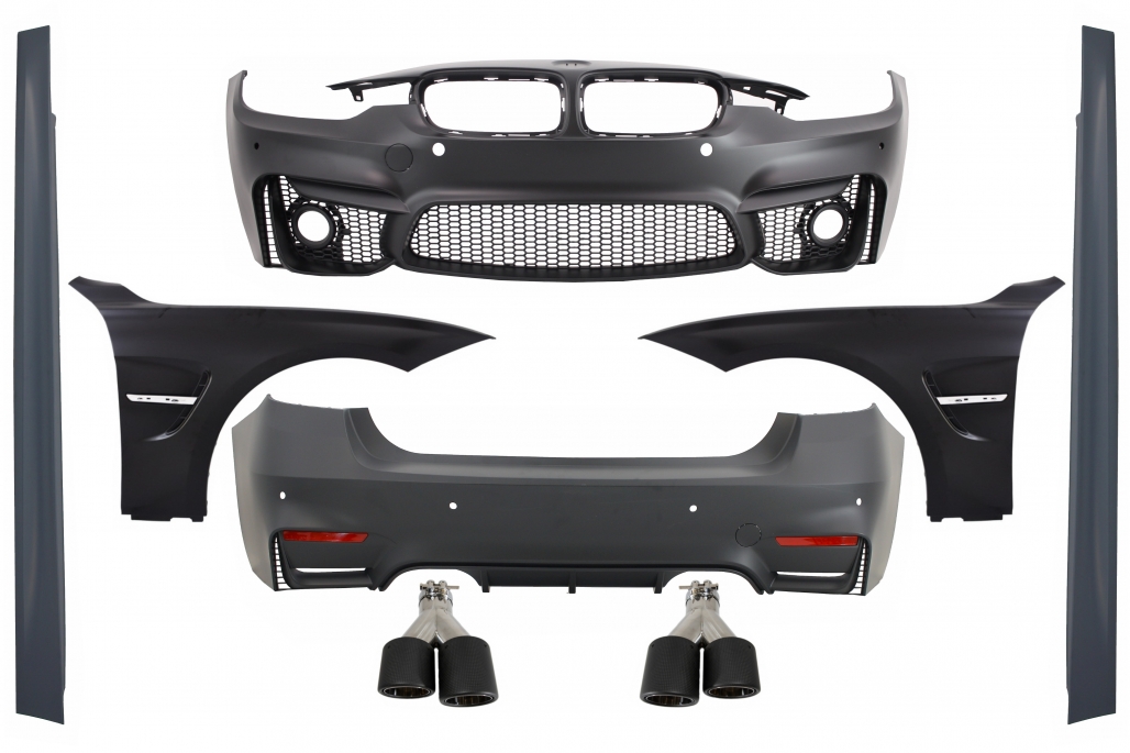 Complete Body Kit suitable for BMW 3 Series F30 (2011-2019) with Front Fenders and Exhaust Muffler Tips Carbon Fiber EVO II M3 CS Design