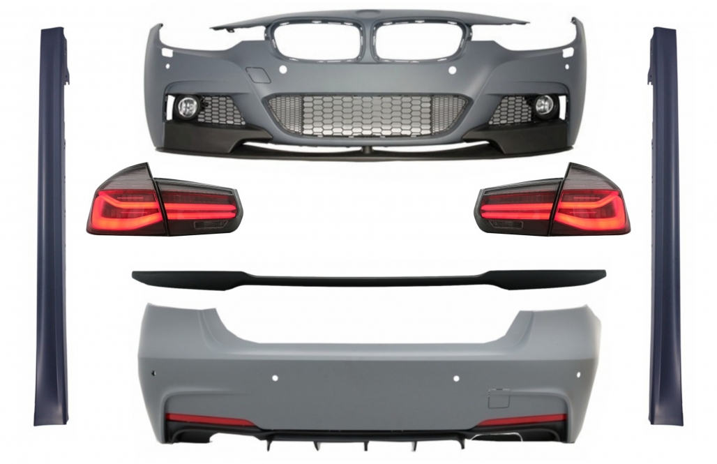 Complete Body Kit suitable for BMW 3 Series F30 (2011-2019) with Trunk Spoiler and LED Taillights Dynamic Sequential Turning Light M-Performance Design