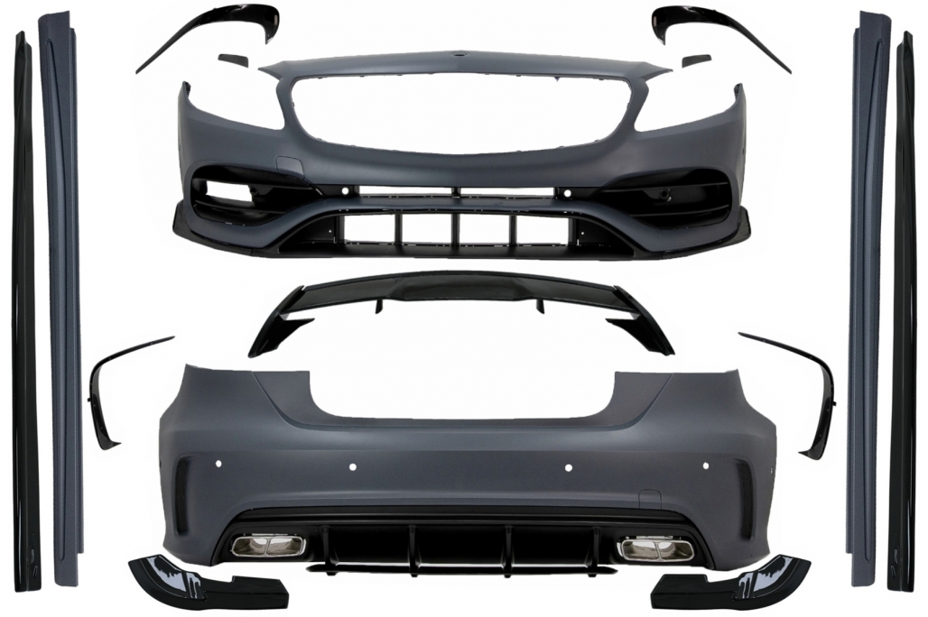 Complete Body Kit suitable for Mercedes A-Class W176 (2012-2018) A45 Design with Spoiler Splitters Fins Aero