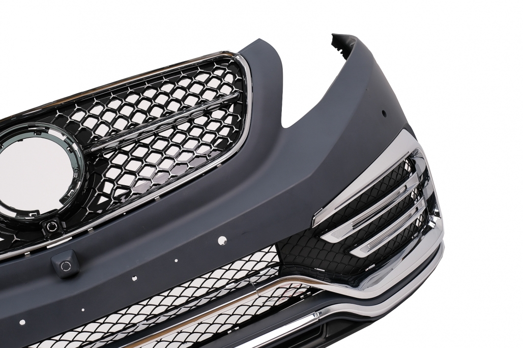 Front bumper equipped with central-lower grille side grilles DRL LED Lights PDC holders