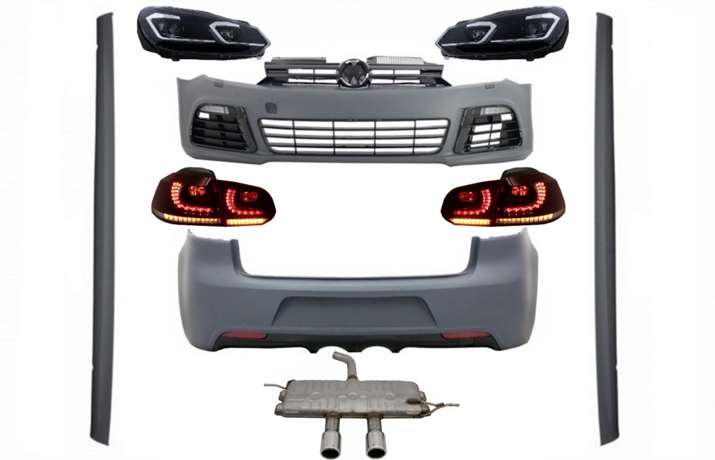 Complete Body Kit suitable for VW Golf VI 6 MK6 (2008-2013) R20 Design with Headlights LED and Taillights Dynamic Turning Light + Complete Exhaust System