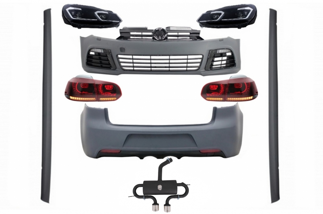 Complete Body Kit suitable for VW Golf VI 6 MK6 (2008-2013) R20 Design with Headlights LED and Taillights Dynamic Turning Light + Complete Exhaust System