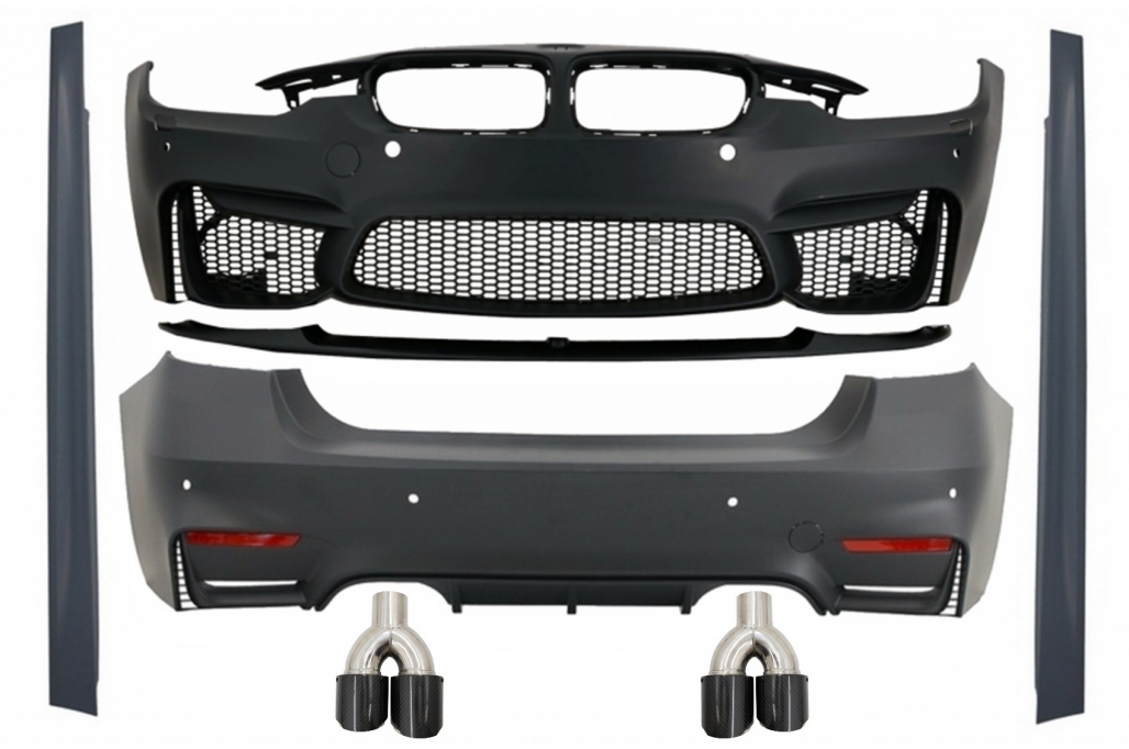 Complete Body Kit with Carbon Fiber Exhaust Muffler Tips suitable for BMW F30 (2011-2019) EVO II M3 CS Style Without Fog Lamps