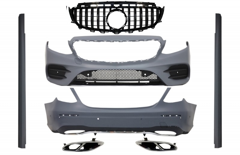 Complete Body Kit with Central Grille and Muffler Tips suitable for Mercedes E-Class W213 (2016-2019) GT-R E43 E53 Sport Line Design Black