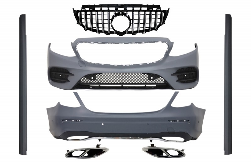 Complete Body Kit with Central Grille and Muffler Tips suitable for Mercedes E-Class W213 (2016-2019) GTR E43 E53 Sport Line Design