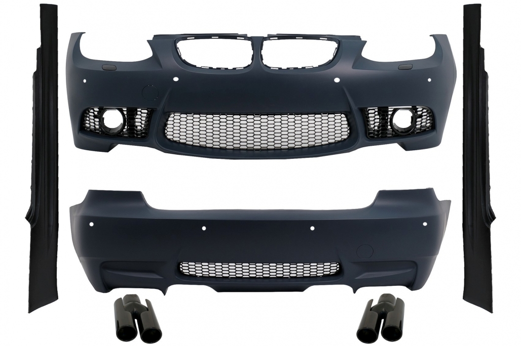 Complete Body Kit with Exhaust Muffler Tips Piano Black suitable for BMW 3 Series E92 Coupe E93 Cabrio Non-LCI (2006-2009) M3 Design
