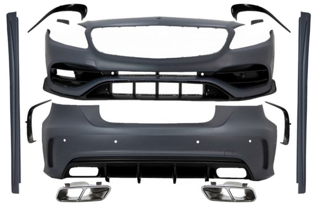 Complete Body Kit with Exhaust Muffler Tips suitable for Mercedes A-Class W176 (2012-2018) Facelift A45 Design