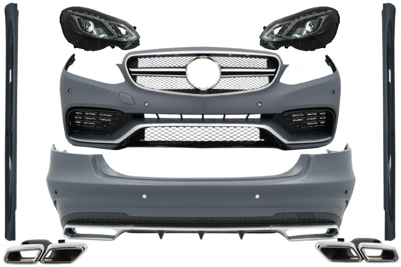 Complete Body Kit with Exhaust Tips and LED Xenon Headlights suitable for Mercedes E-Class W212 (2013-2016) E63 Design