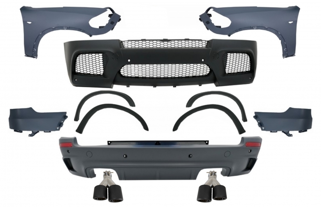 Complete Body Kit with Front Fenders and Twin Exhaust Muffler Tips Carbon Fier Matte suitable for BMW X5 E70 (2007-2013) X5M M Design