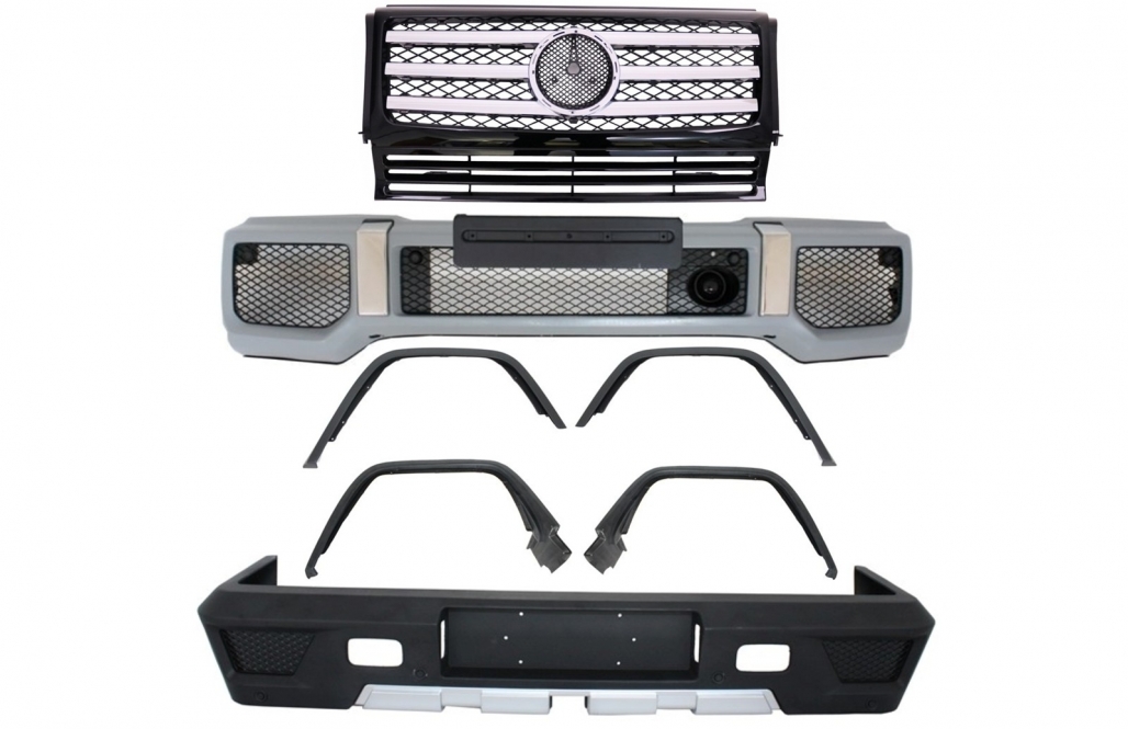 Complete Conversion Body Kit suitable for MERCEDES G-Class W463 (1989-2017) G63 G65 with Front Grille Piano Black / Chrome Stripes Design