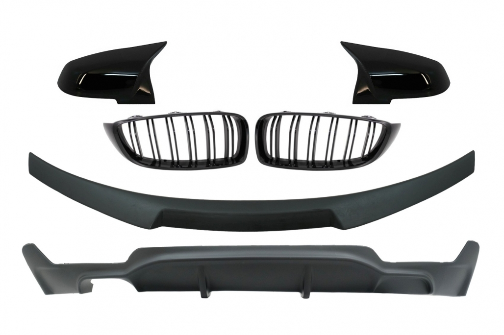 Conversion Package to M Performance Design Central Kidney Grilles With Trunk Spoiler and Mirror Covers suitable for BMW 4 Series Coupe F32 (2013-up) Air Diffuser Matte Black