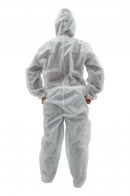 Old Description100% polypropylene white suit with hood disposable zipper closure elastic cuffs size M/L