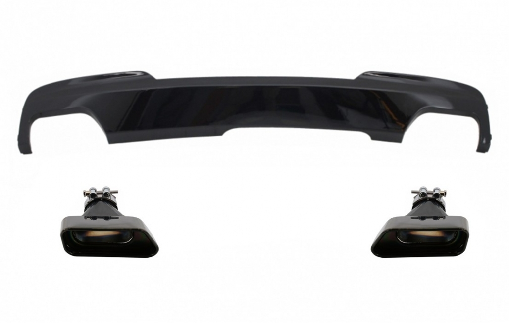 Double Outlet Air Diffuser Brilliant Black Edition with Exhaust Muffler Tips Sport M-Tech 550i V8 LCI Square suitable for BMW F10 F11 (2011-2017)