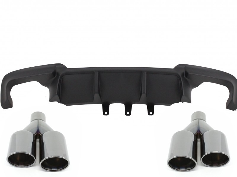 Double Outlet Air Diffuser suitable for BMW 5 Series F10 F11 (2011-2017) M Sport Design with Exhaust Muffler Tips Black