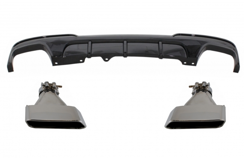 Double Outlet Air Diffuser suitable for BMW 5 Series F10 F11 (2011-2017) with Exhaust Muffler Tips M-Performance Design Piano Black