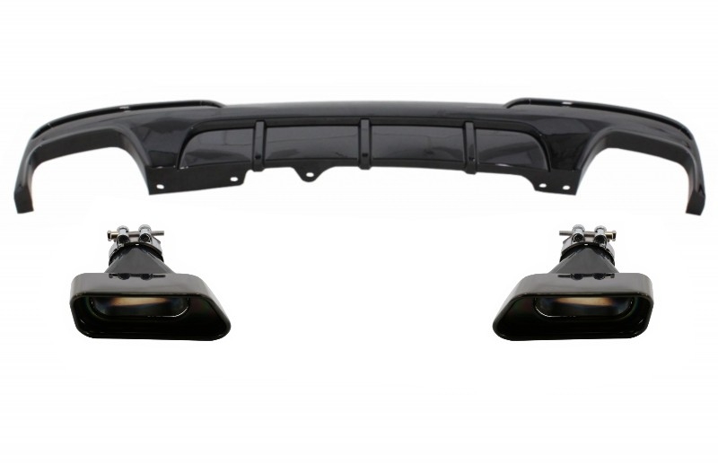 Double Outlet Air Diffuser suitable for BMW 5 Series F10 F11 (2011-2017) with Exhaust Muffler Tips M-Performance Design Piano Black