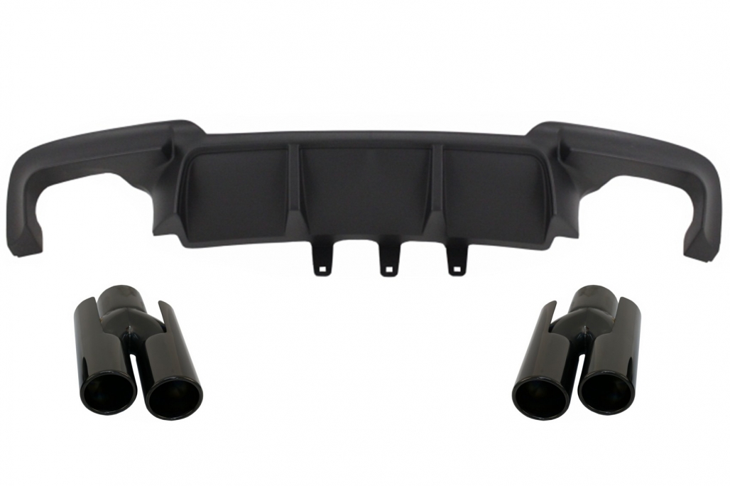 Double Outlet Air Diffuser suitable for BMW F10 5 Series (2011-2017) M Design with Exhaust Muffler Tips Piano Black