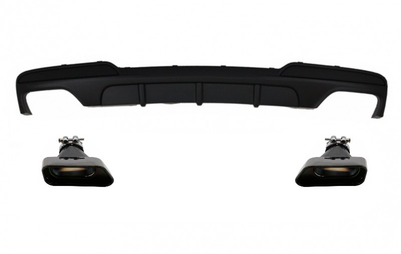 Double Outlet Air Diffuser suitable for BMW F10 5 Series (2011-2017) M-Performance Design with Black Exhaust Muffler Tips V8 LCI Square Design