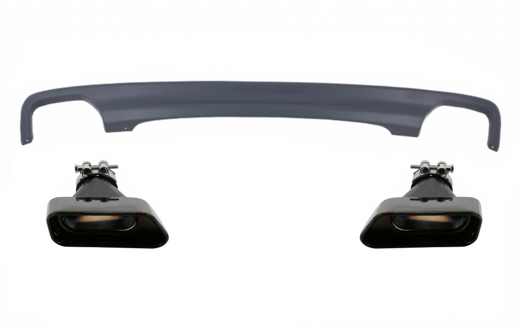 Double Outlet Air Diffuser suitable for BMW F10 F11 Sedan Touring 5 Series (2011-2017) 550i Design with Exhaust Muffler Tips Square Design