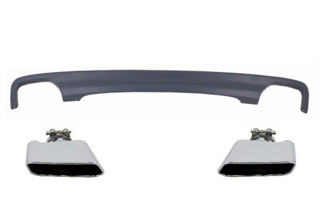 Double Outlet Air Diffuser suitable for BMW F10 F11 Sedan Touring 5 Series (2011-2017) 550i Design with Exhaust Muffler Tips Square Design