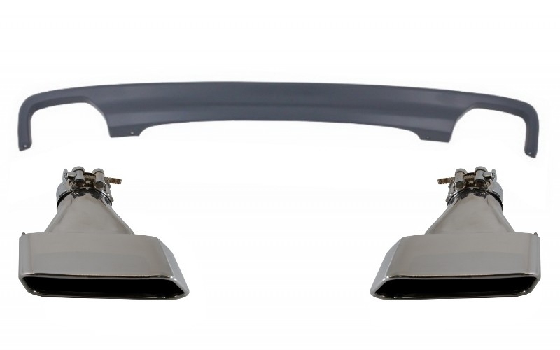 Double Outlet Air Diffuser suitable for BMW F10 F11 Sedan Touring 5 Series (2011-2017) 550i Design with Exhaust Muffler Tips Square