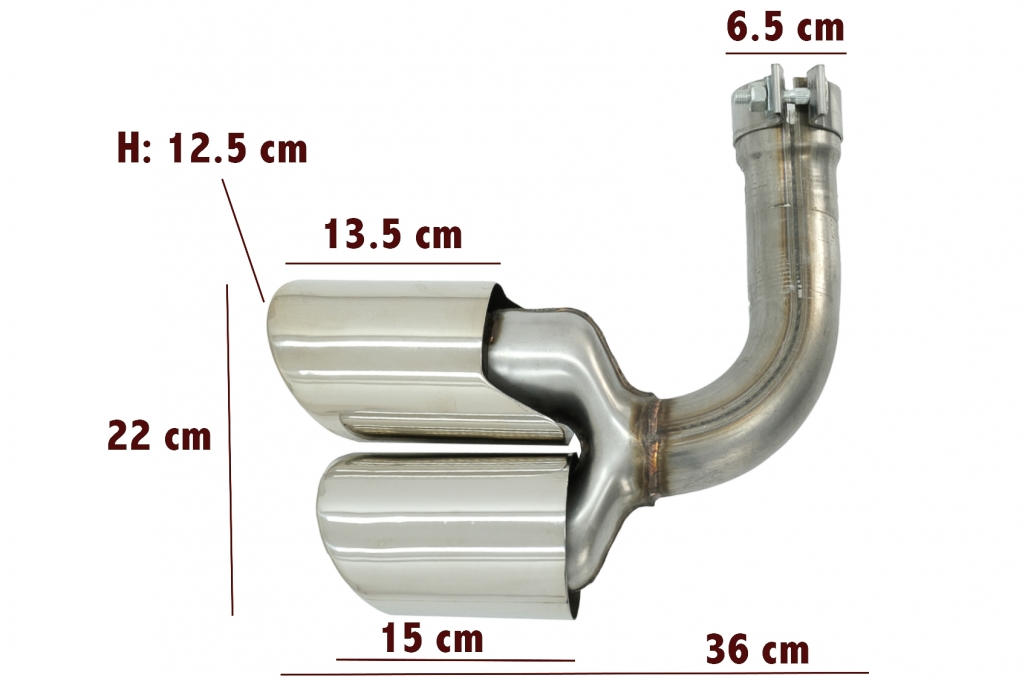 Installation in an authorized car service is highly recommended!Package ContainsOne set of muffler tips (left-right)Package dimensionsLength (cm): 45