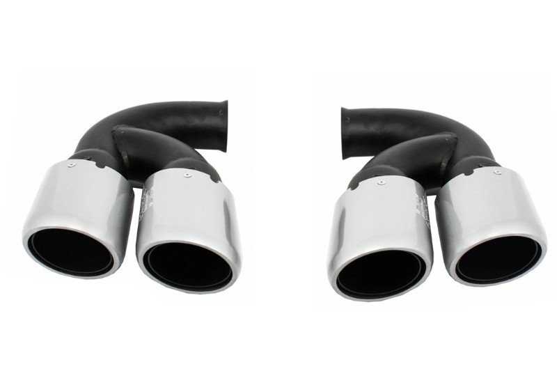 Exhaust Muffler Tips suitable for Porsche Cayenne 92A V6 V8 Petrol (05.2010-09.2014) GTS Design Silver